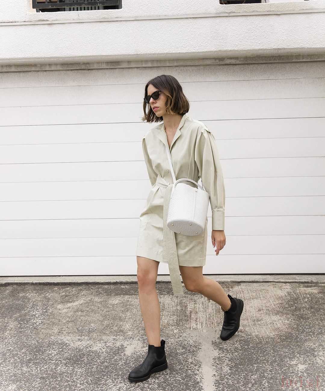 水桶包誰會陌生?它幾乎是一個眾所周知的款。但oroton還是會設(shè)計得和別的款有少許的不同,比如說它的走線和剪裁,中間故意留出一條線的設(shè)計,并非是工藝上的瑕疵,而是設(shè)計上一種精髓。搭配襯衣裙,真是無比的好看簡約。