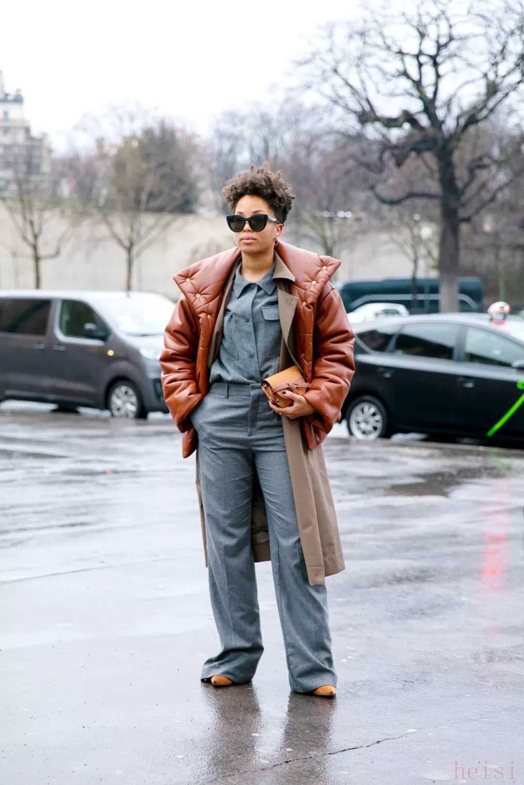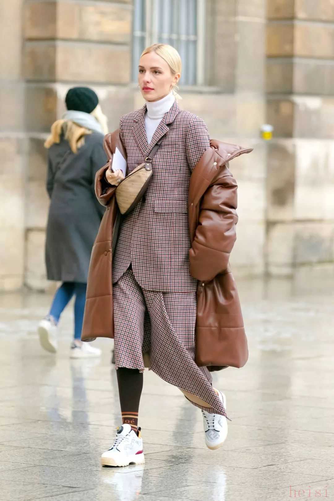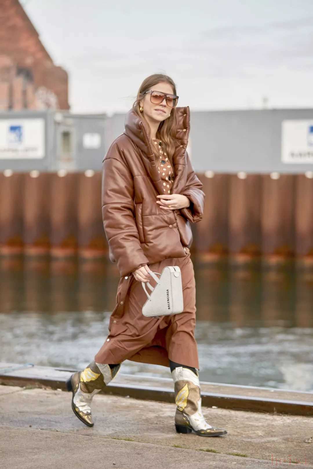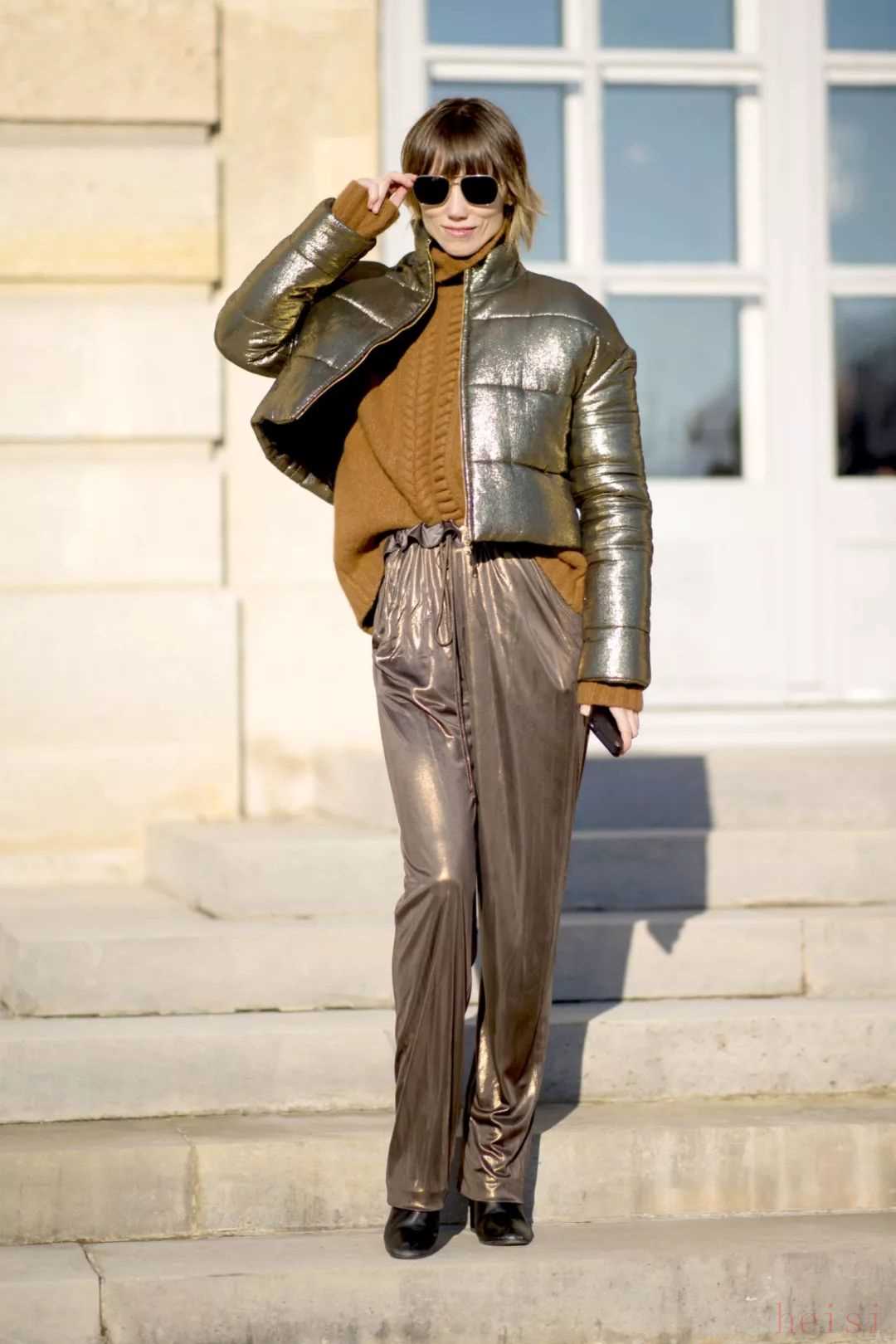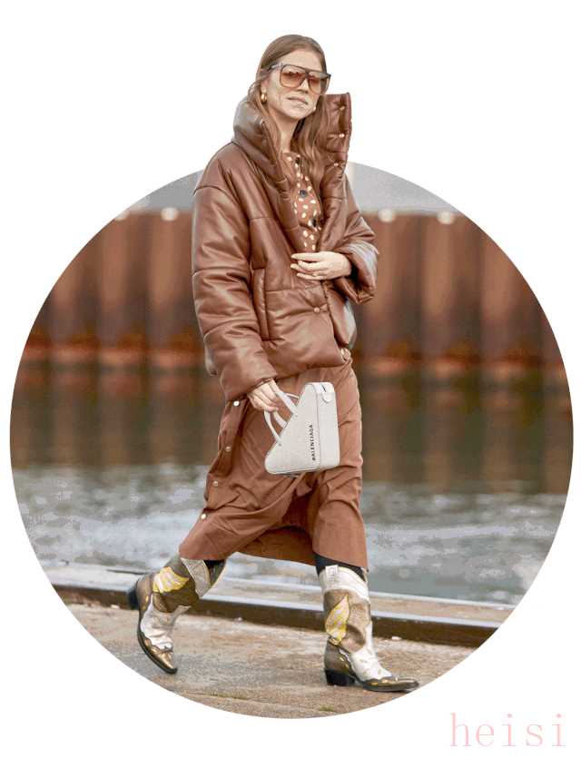 除了未來(lái)感十足的金屬風(fēng)亮面羽絨服,有著更加防風(fēng)和保暖性能的皮革面料羽絨服也被越來(lái)越多的達(dá)人們穿上身。相對(duì)啞光的皮料天生就自帶高級(jí)感,很好地中和了羽絨服略帶休閑和運(yùn)動(dòng)的搭配屬性,即使是出席一些偏正式的場(chǎng)合也可以輕松勝任。