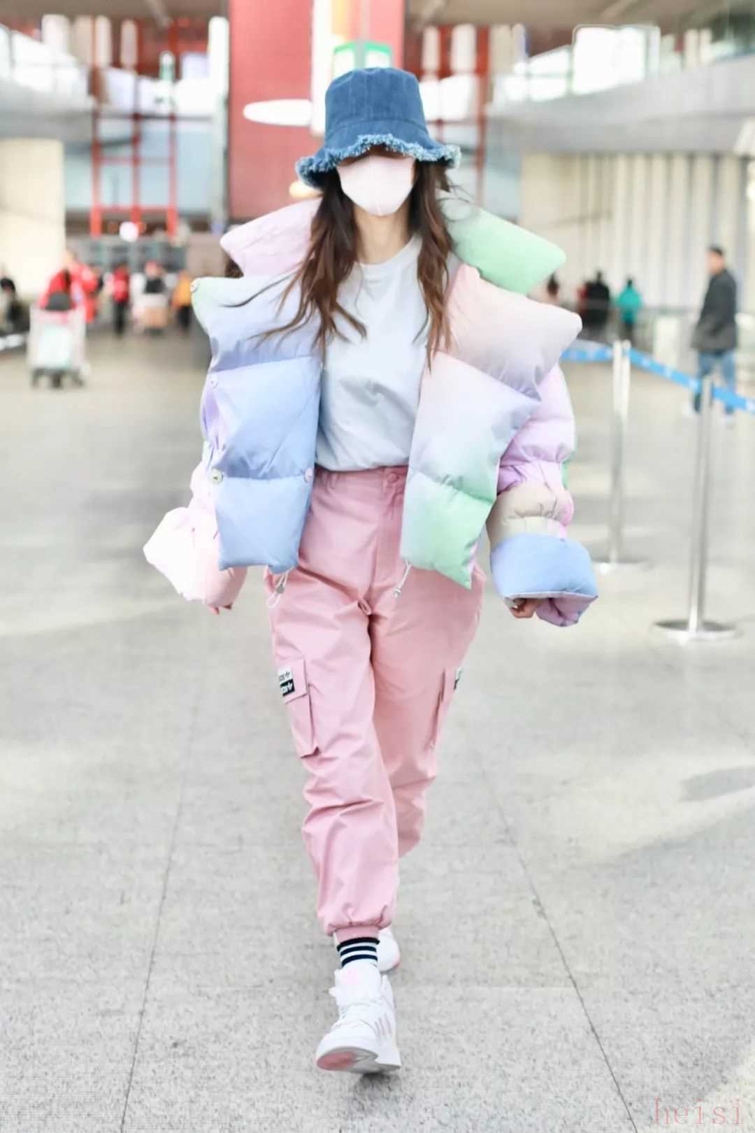 Angelababy近日現(xiàn)身機(jī)場(chǎng)就選擇了一件來(lái)自品牌Saks Potts的扎染風(fēng)格羽絨服,和下半身同色系的工裝褲做搭配,充滿了粉粉嫩嫩的俏皮少女感。