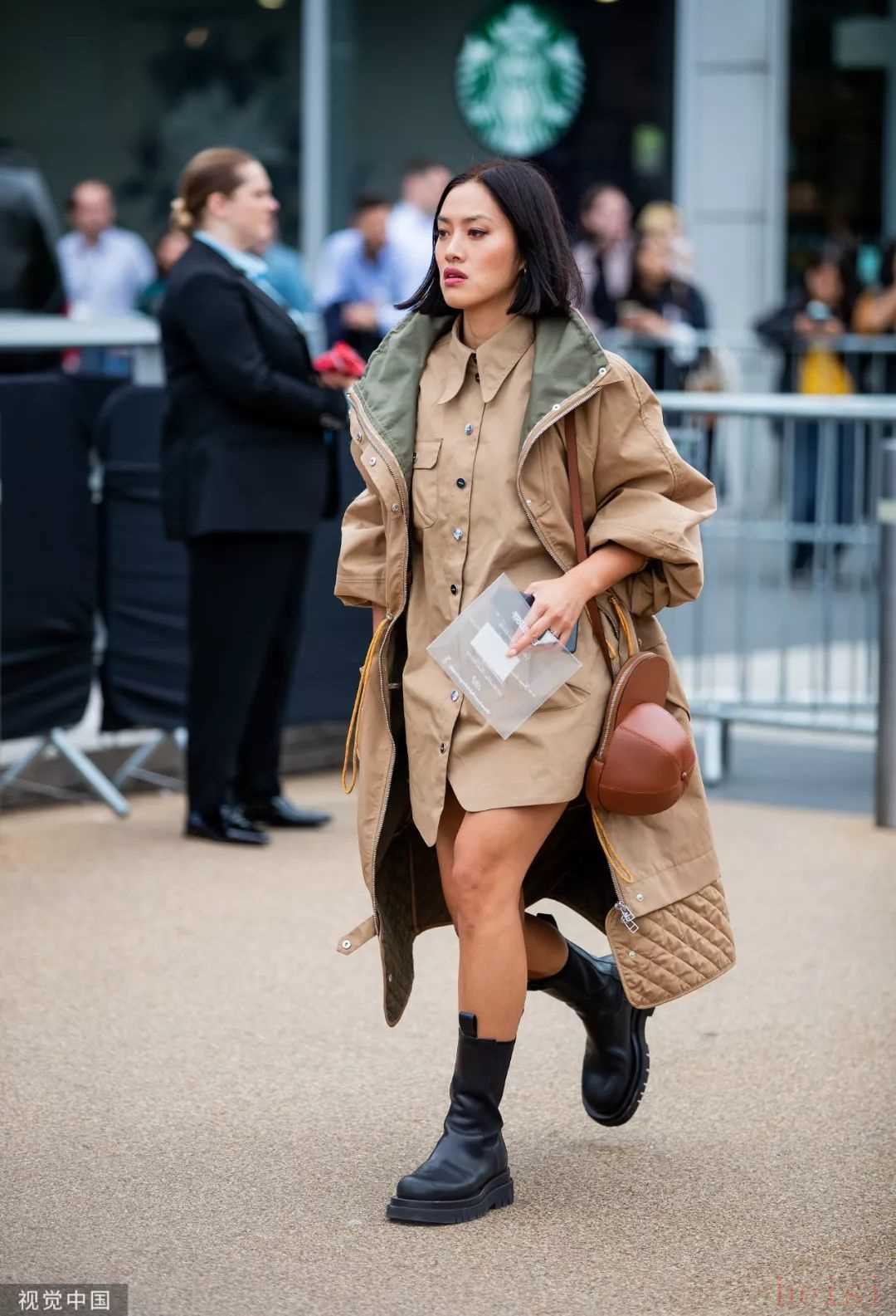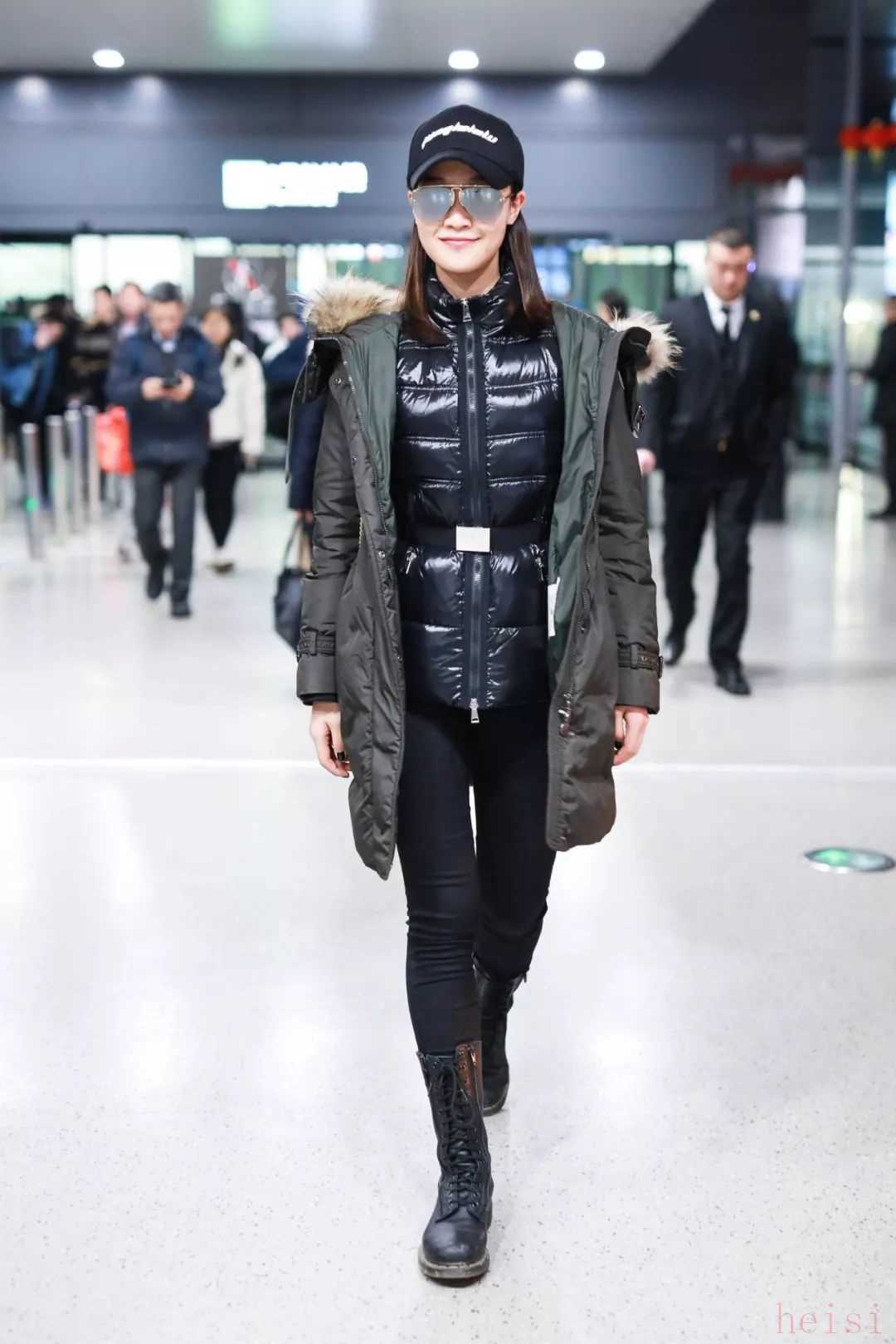同樣pick了類(lèi)似搭配的還有藍(lán)盈瑩和吳瑾言,派克大衣加上馬丁靴的帥氣風(fēng)格讓人走路自帶氣場(chǎng)。哪怕沒(méi)有女明星們的好身材,寬大的下擺和有助于展現(xiàn)小腿線條的馬丁靴,對(duì)下半身有些贅肉的妹子們也非常友好。
