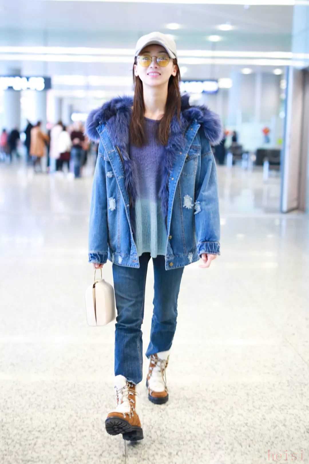 帥氣的派克大衣搭配同樣帥氣的緊身牛仔褲+馬丁靴,是最經(jīng)典的搭配方法之一?,F(xiàn)身機(jī)場(chǎng)的袁姍姍就選擇了這樣一身。下半身緊身褲和馬丁靴對(duì)于視覺(jué)的收束效果利用了上寬下窄的經(jīng)典搭配法則可以很好地彌補(bǔ)上半身派克大衣的厚重感。