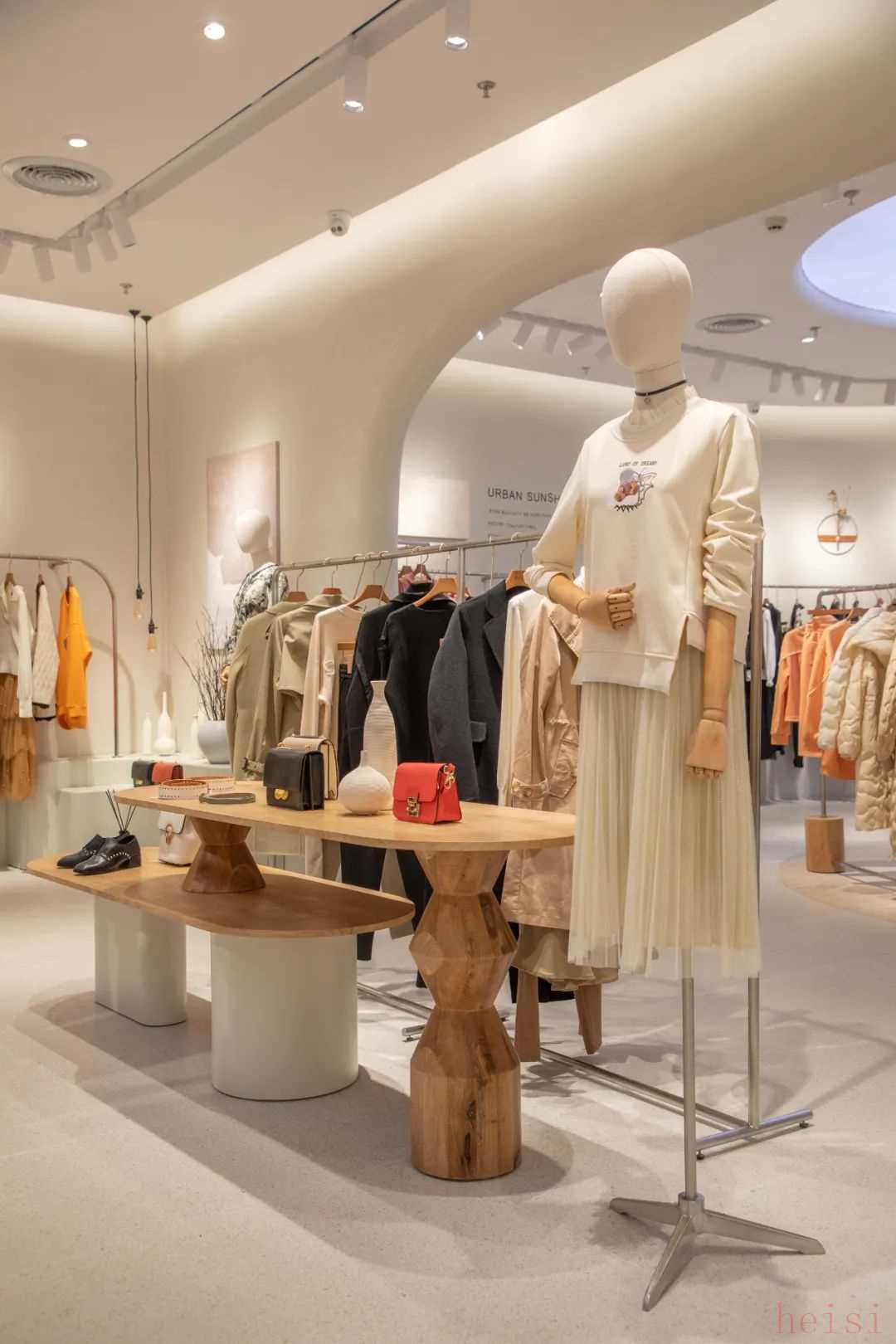 快節(jié)奏的都市生活,讓人們?cè)絹?lái)越渴望遠(yuǎn)離喧囂、親近自然,服裝零售空間也從“解決穿著”過(guò)渡到“個(gè)性化消費(fèi)”乃至精神追求層面,而這一切與更高標(biāo)準(zhǔn)的美學(xué)享受和設(shè)計(jì)表現(xiàn)密不可分。因此,在熙然的第五代SI設(shè)計(jì)中,MJVMD設(shè)計(jì)團(tuán)隊(duì)深掘品牌DNA的文化承載,選擇了既傳承經(jīng)典而又當(dāng)下流行的自然純樸侘寂風(fēng)為設(shè)計(jì)主線,從”色、形、質(zhì)、境“幾個(gè)方面精心打磨,以期營(yíng)造一種自然、陽(yáng)光、溫暖、愜意、舒適的空間環(huán)境,體現(xiàn)出人與自然、生活場(chǎng)景與商業(yè)空間的融合關(guān)系。通過(guò)最純凈的方式帶領(lǐng)消費(fèi)者回歸化繁為簡(jiǎn)的時(shí)尚生活,在這里獲得心靈的回歸和精神的放松。