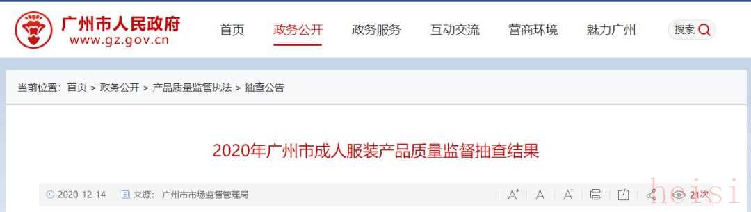 據(jù)廣州市人民政府網(wǎng)站消息,2020年第三季度,廣州市市場監(jiān)督管理局對成人服裝產(chǎn)品質(zhì)量進行了監(jiān)督抽查,共抽查了284批次樣品,經(jīng)檢驗,有67批次產(chǎn)品不符合標準要求。