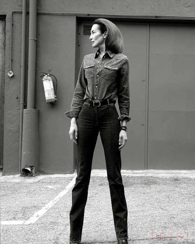 Nieves álvarez用牛仔疊穿,深淺錯(cuò)開,尖頭短靴收尾,這套思路對(duì)應(yīng)了“同色遞進(jìn)”。