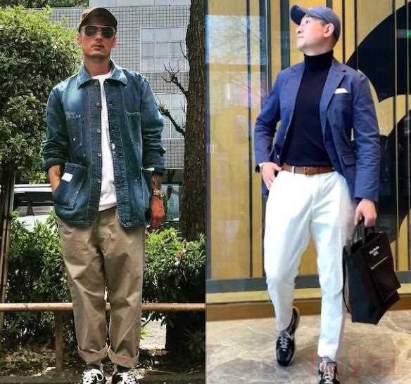 西褲+運動鞋的關(guān)鍵是褲子別太修身,稍微留點余量,褲腳卷兩下,露出一截襪子或腳踝,比整套正裝看著松弛。