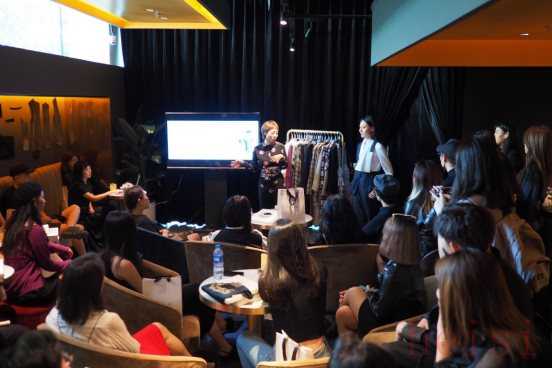本次活動中,首先進行分享的是Alicia Lee創(chuàng)始人李坤,她帶來了2019秋冬系列,遵循系列品牌的“和諧矛盾”理念,系列靈感來自非洲游牧部落“馬賽人”和80年代職業(yè)女性兩個靈感。品牌的 “時髦中國風(fēng)” 元素也延續(xù)貫穿,獨特的設(shè)計令人耳目一新。李坤與超模李蔚語現(xiàn)場示范了“一衣多穿”的搭配方法,也為眾人帶來新奇的體驗。