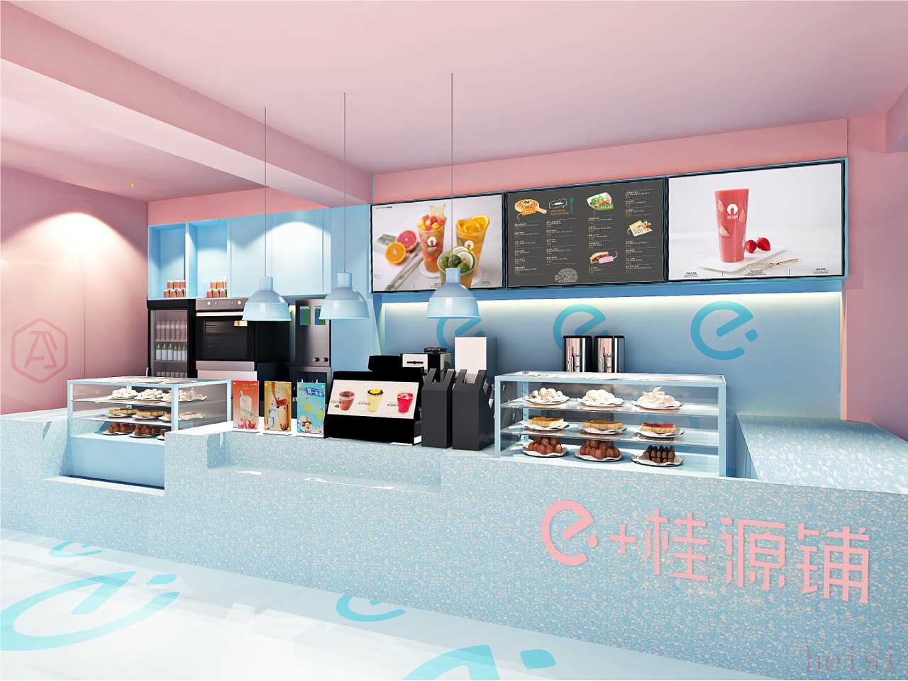 今年1月,餓了么和桂源鋪合作,在上海開了一家“e+桂源鋪”Half主題甜品店:店鋪一半藍色一半粉色的設(shè)計裝修,桂源鋪的色彩和餓了么logo進行的混搭;就連食品和包裝文案都是兩個品牌聯(lián)名定制的。