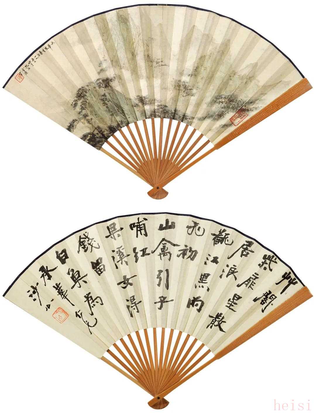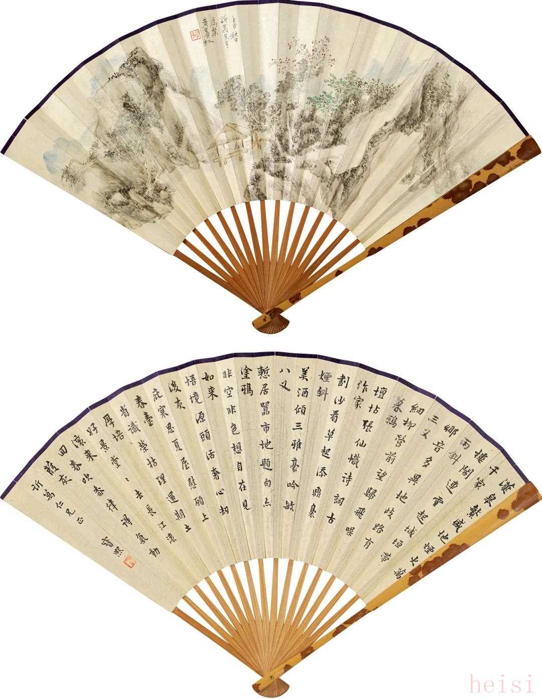 2.1953年傅抱石兩作入選文化部舉辦全國(guó)畫展,并出任江蘇文聯(lián)籌委會(huì)委員。是故,傅抱石創(chuàng)作熱情高漲,佳作頻出,或大或小,盡皆佳善。此柄寫疏朗山巒,松崖漫漫,散毫色墨,筆筆松靈,儼然性情中所作,閑章鈐“往往醉后”便是一種得意。更難得處,背有國(guó)學(xué)大師胡小石行書寫杜甫《解悶十二首》。沙公為南京宿儒,博古通今,古文字、書學(xué)、楚辭、杜詩(shī)尤精。其書亦從學(xué)養(yǎng)中來(lái),綜各家各派,法度沉著雄健,四體俱佳。法度沉著雄健,四體俱佳。此柄筆法中既有流沙墜簡(jiǎn)的飛動(dòng)之姿,又得北碑平拙風(fēng)韻,堪稱妙作。扇骨由近世刻竹名家于子安刊刻,雙面微雕隸書《前出師表》。