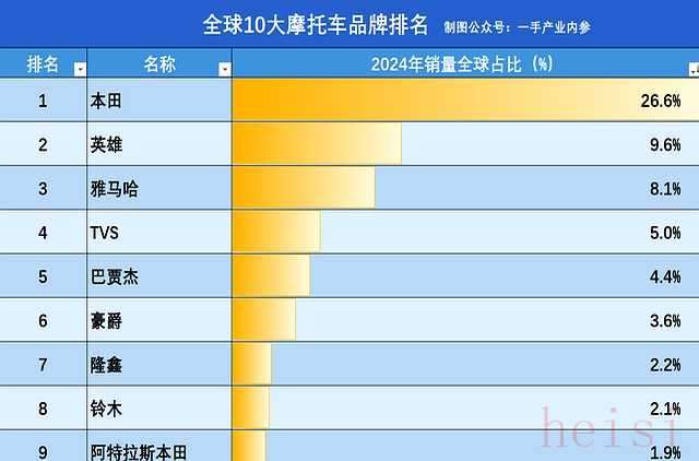 "根據近年(特別是2023年)數據,全球銷量排名前列的摩托車品牌(通常指銷量超過100萬輛或150萬輛的級別)大致如下:"