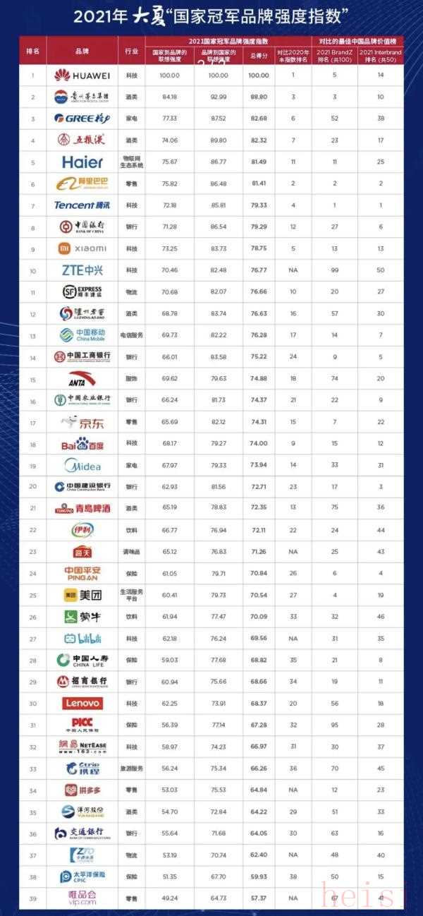 研究表明,科技創(chuàng)新力量成為影響品牌的國家級地位的重要驅(qū)動因素。華為蟬聯(lián)2021年度榜首,中興首次上榜便榮居第10位。海爾的排名上升6位,與其近年來堅持“物聯(lián)網(wǎng)生態(tài)品牌”建設和“海爾智家”全場景解決方案有關。