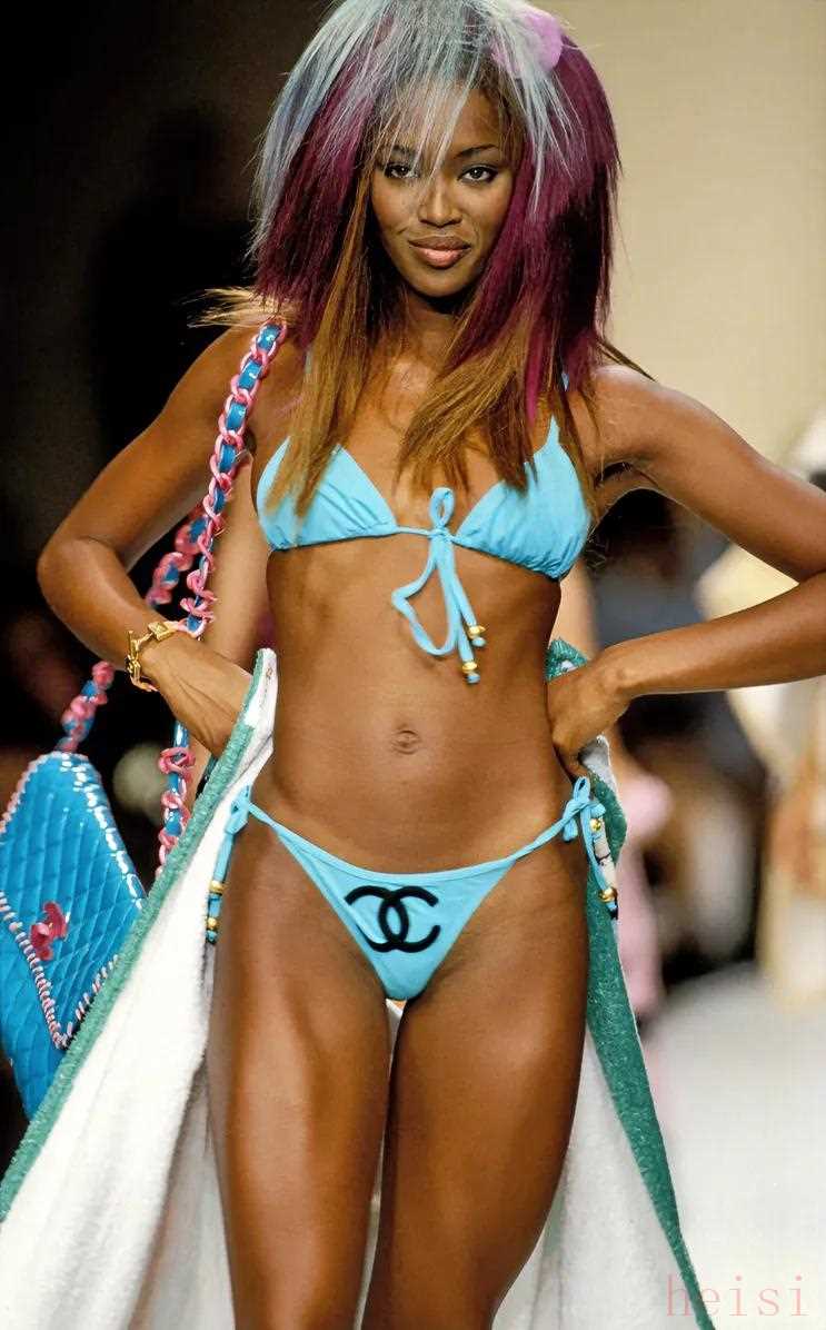 繼續(xù)滾動(dòng)查看香奈兒 90 年代最具誘惑力的泳裝時(shí)刻,包括其經(jīng)典的比基尼。