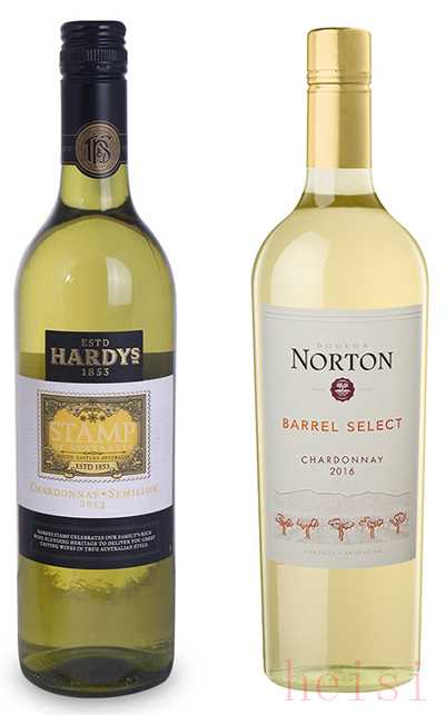 Hardys哈迪郵票霞多麗賽美蓉干白葡萄酒及Bodega Norton酒莊2013年份霞多麗白葡萄酒,清爽的果香能夠很好地帶出海鮮類食材的鮮甜味道。