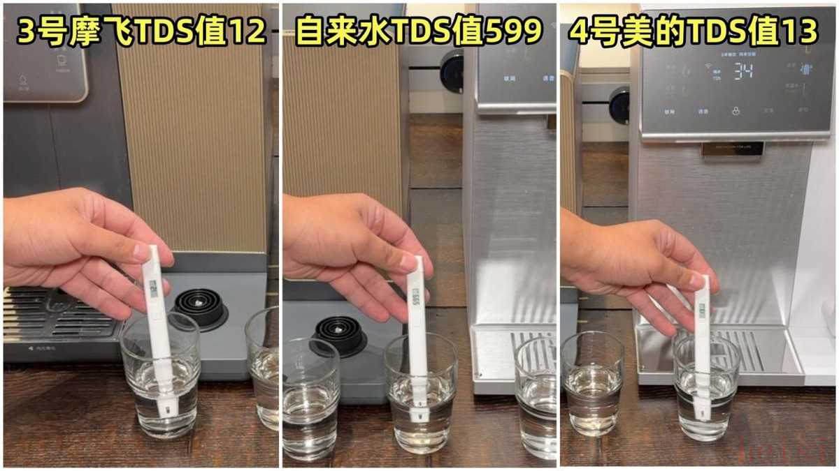 但我發(fā)現(xiàn)只有3號(hào)摩飛和4號(hào)美的是純凈水,因此我僅對(duì)這兩款進(jìn)行了實(shí)測(cè)并計(jì)算了脫鹽率,可以看到這兩款表現(xiàn)都十分不錯(cuò),脫鹽率大概為98%左右,即使和廚下凈水器相比也毫不遜色。