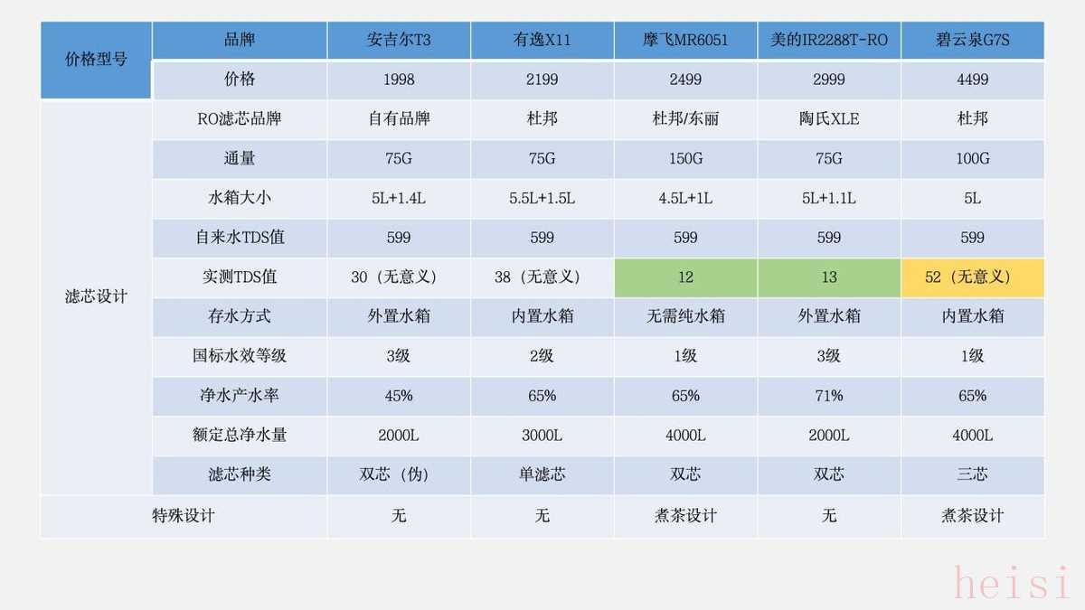 好了聊了這么多詳細(xì)大家對(duì)五款凈水器的基礎(chǔ)參數(shù)都已經(jīng)有了詳細(xì)的了解,最后咱們?cè)賮?lái)總結(jié)一下并聊聊各自的差異化設(shè)計(jì)。