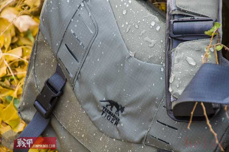 耐磨性是一方面,CORDURA的另一大優(yōu)勢(shì)就是具有很好的防水性能,可以直接往包上澆水,水星四濺、水珠滾落,水量遠(yuǎn)大于大雨標(biāo)準(zhǔn),面料表面完全沒有滲透的情況。