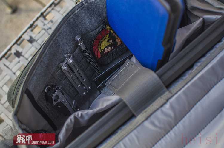 后部為一通到底的帶拉鏈倉位,也能放下A4大小的雜志,并且也有一上一下兩條橫向的魔術(shù)貼,可以粘貼一些配件。