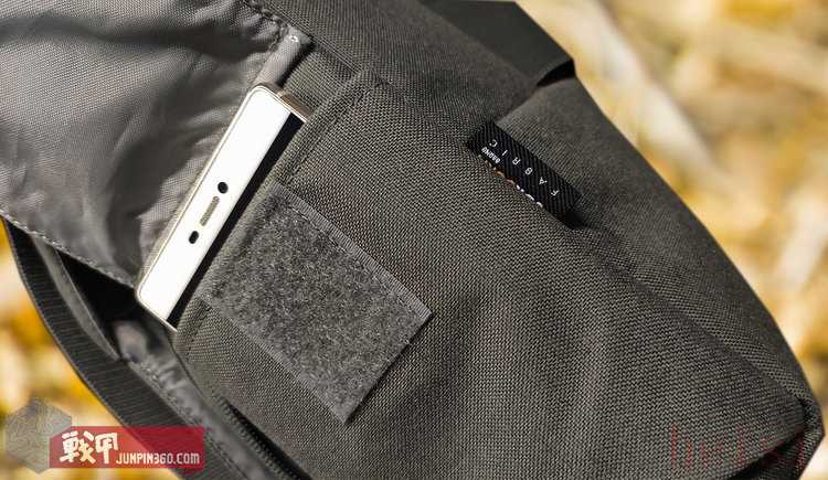 側(cè)面?zhèn)}位也是魔術(shù)貼翻蓋設(shè)計(jì),前文已經(jīng)展示了可以放下一瓶330ml左右的小水。實(shí)際容納寬度約為10厘米、深度約為14.5厘米,放一部手機(jī)剛好,也方便隨手拿取。