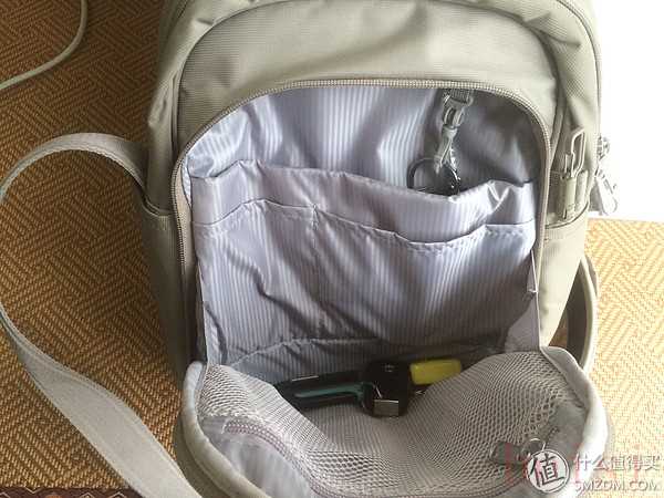 主口袋也比以前多了一個(gè)分層,而且RFID保護(hù)也集成到這里來(lái)了。整個(gè)包優(yōu)化的比之前好,之前我只能裸體放一個(gè)11寸的AIR,現(xiàn)在可以戴套啦!還是戴套好,干凈有衛(wèi)生:)其實(shí),我之前在老款放AIR的時(shí)候,因?yàn)檫@個(gè)包畢竟不是電腦包,所以放包的時(shí)候盡量輕放也仍然把脆弱的AIR摔變形了。所以,戴套的重要性還是大大滴。