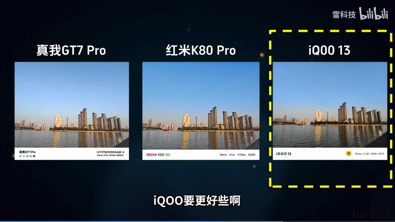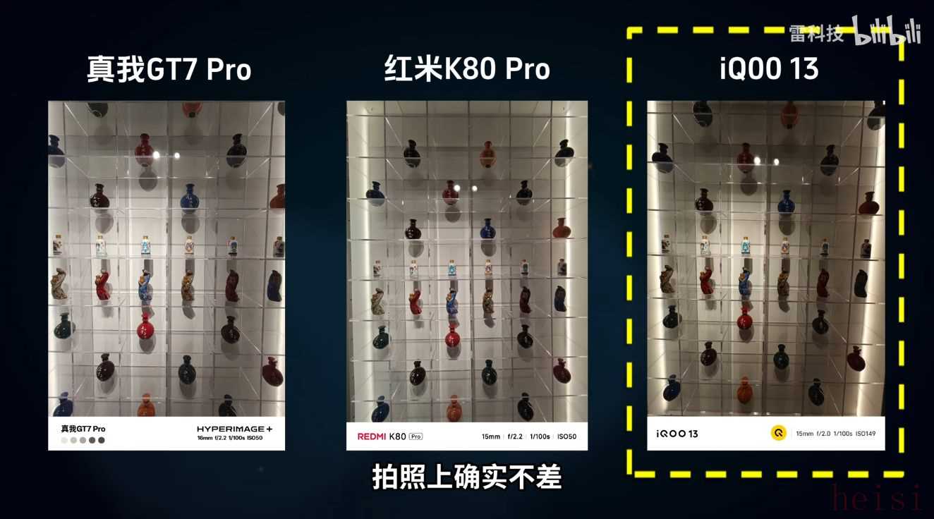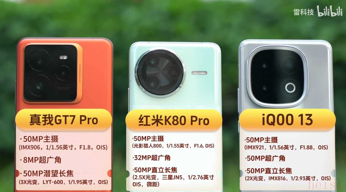 (圖片來自雷科技)最后是超廣角,硬件上iQOO 13是5000萬像素,REDMI K80 Pro是3200萬,真我GT7 Pro是800萬像素,可以看到各家采取的方案都會有比較大的區(qū)別,最后在日常使用里也會呈現(xiàn)不同的側(cè)重點(diǎn)。