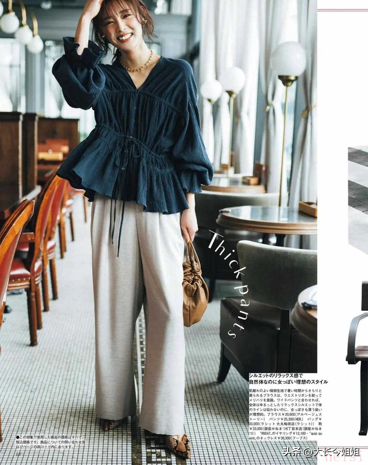 引人注目的甜美襯衫選擇流行的短款,加入漂亮的闊腿褲,突出現(xiàn)代脫俗感和調(diào)整整體裝扮的平衡。