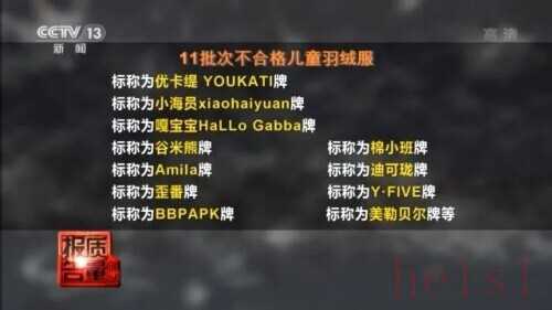 11批次兒童羽絨服不合格,包括標(biāo)稱(chēng)為優(yōu)卡緹牌、谷米熊牌、棉小班牌、小海員牌等。