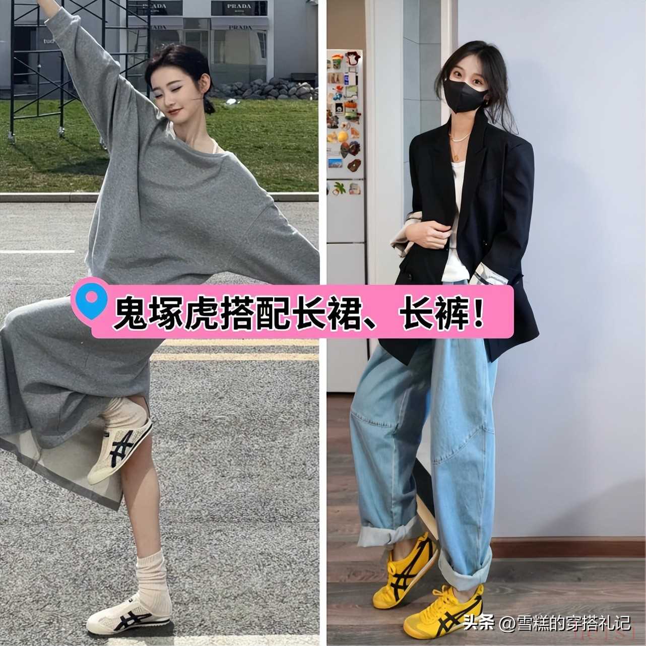 ① 鬼塚虎和闊腿褲、長裙的組合,休閑時髦