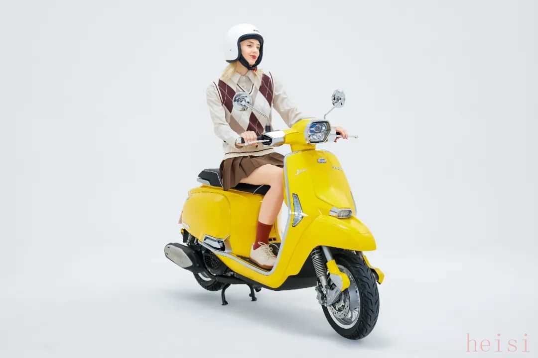 Lambretta J150是首次在國內亮相的全新產品,是一款為都市青年準備的時尚利器。J150繼承了Lambretta家族標志性的六邊形車燈、豬鼻罩前臉、固定式前擋泥板,五檔可調的多連桿前搖臂,但整體風格更顯運動和年輕時尚。多達9種鮮艷的外觀配色選擇,盡情表達個性。
