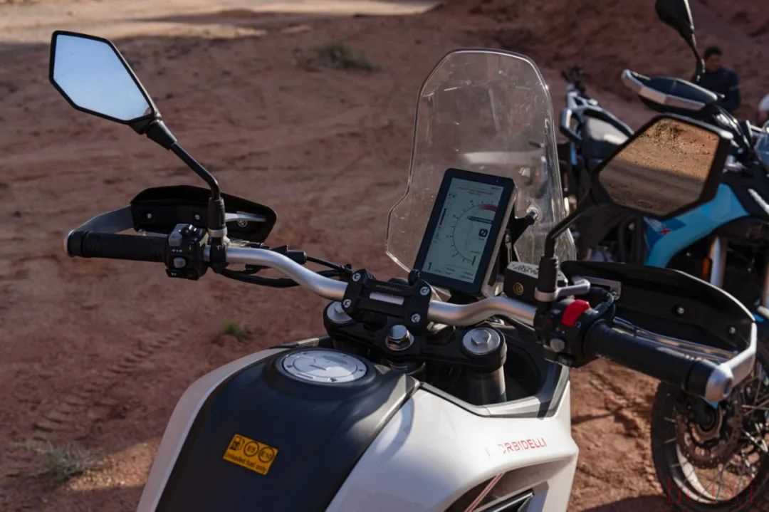 ON-ROAD方面表現看來,T502X采用7寸TFT全彩液晶顯示豎屏,820mm座高,搭配柔軟收窄的坐墊,適合絕大部分人的身高,配合恰到好處的手把位置,坐姿舒展,從容駕馭。根據騎乘三角可手動多段可調風擋,手把護罩,舒適騎行,更加愜意。