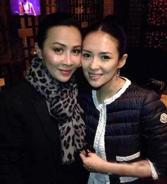 章子怡身穿moncler小棉襖與劉嘉玲合影