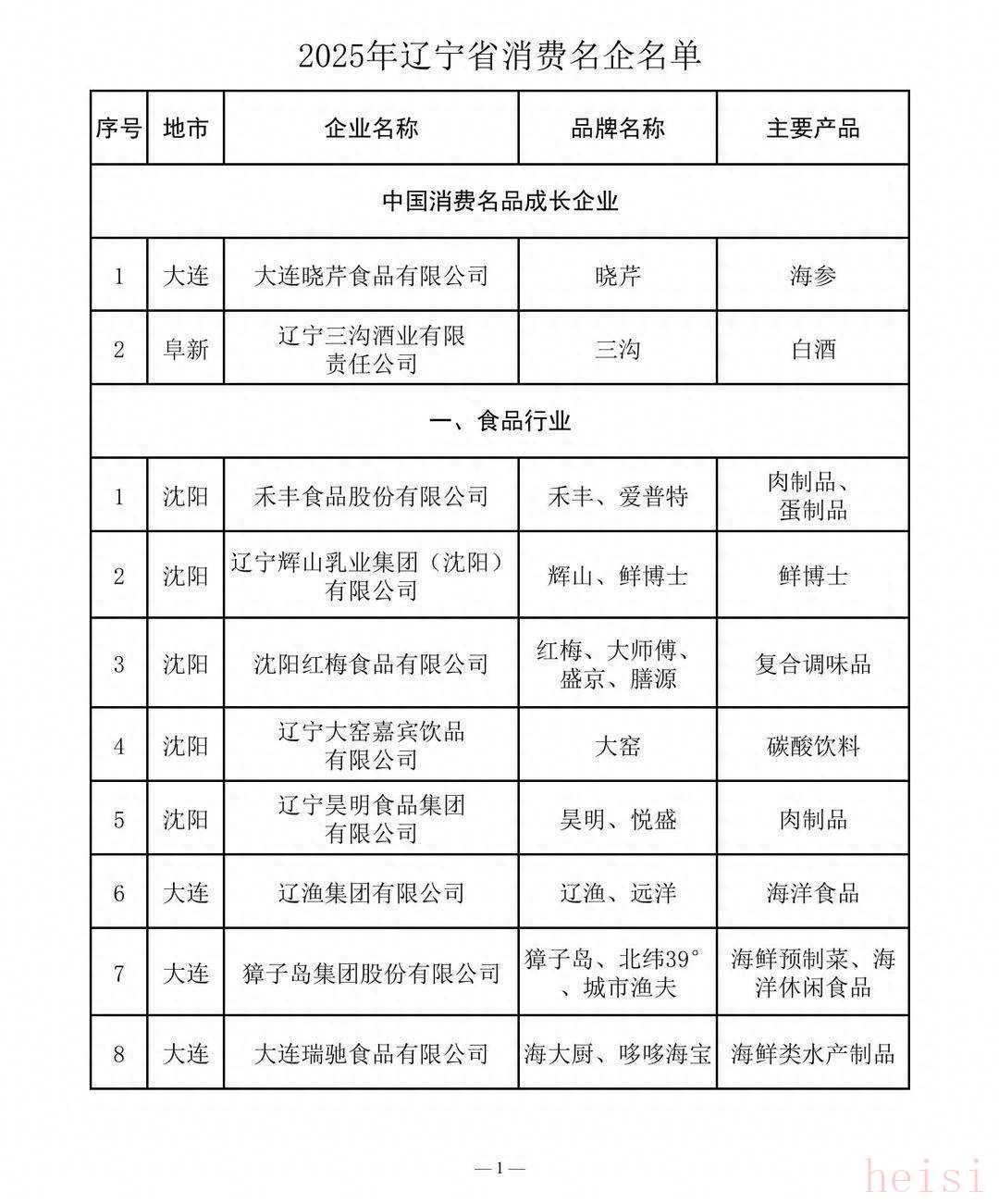 根據(jù)省工業(yè)和信息化廳《關(guān)于開展2025年遼寧省消費(fèi)名企名品方陣推薦工作的通知》,消費(fèi)名企是指專注于細(xì)分行業(yè),創(chuàng)新能力強(qiáng)、質(zhì)量效益優(yōu)、品牌效應(yīng)凸顯,具有價(jià)值引領(lǐng)、輻射帶動(dòng)作用的消費(fèi)品工業(yè)企業(yè)。禾豐食品股份有限公司、遼寧輝山乳業(yè)集團(tuán)(沈陽(yáng))有限公司、遼漁集團(tuán)有限公司、大楊集團(tuán)有限責(zé)任公司等省內(nèi)26個(gè)企業(yè)入選2025年遼寧省消費(fèi)名企。