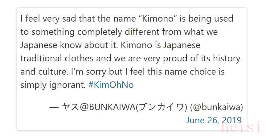 “我們認為'kimono'這個名字屬于所有熱愛和服及其文化的人,所以這個名字不應(yīng)該被壟斷。”