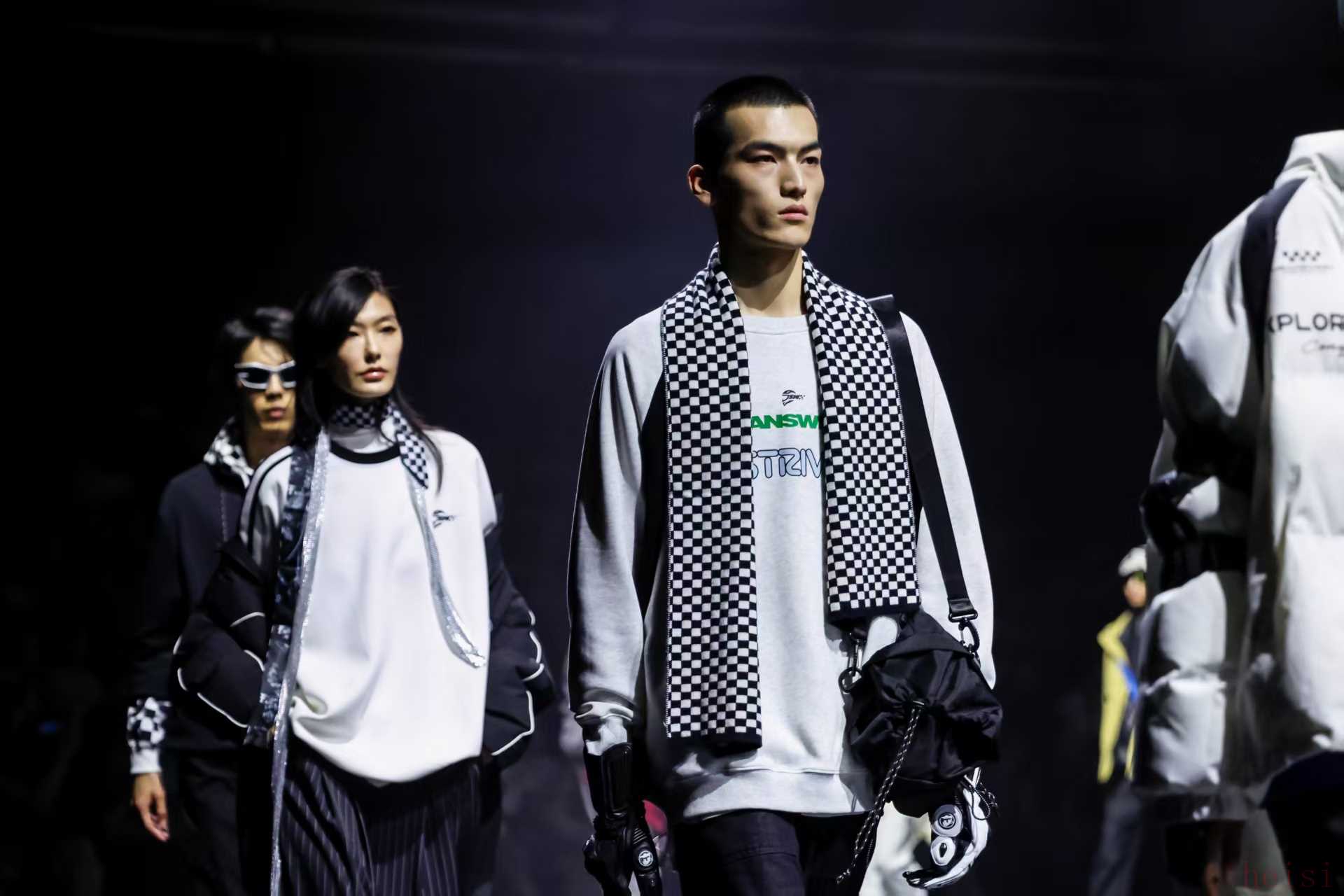 隨著音樂的變換,真維斯品牌秀正式拉開帷幕。主品牌JEANSWEST真維斯將品牌LOGO與代言人王一博形象元素相結(jié)合,通過光幕效果傳遞“潮流與力量”的時尚態(tài)度。輕戶外品牌JEANSWEST OUTDOOR以行走于森林山野與冰雪秘境演繹戶外探索意志。經(jīng)典牛仔品牌JEANSWEST JEANS以光幕墻模擬“拼接牛仔布”視覺效果,經(jīng)典致敬匠心精神。無性別主義品牌JEANSWEST LIFE借彩色云霧營造輕松潮趣氛圍。Z世代潮流品牌JEANSWEST Z+則通過“Z”字LOGO和街潮元素釋放新世代年輕潮流態(tài)度。