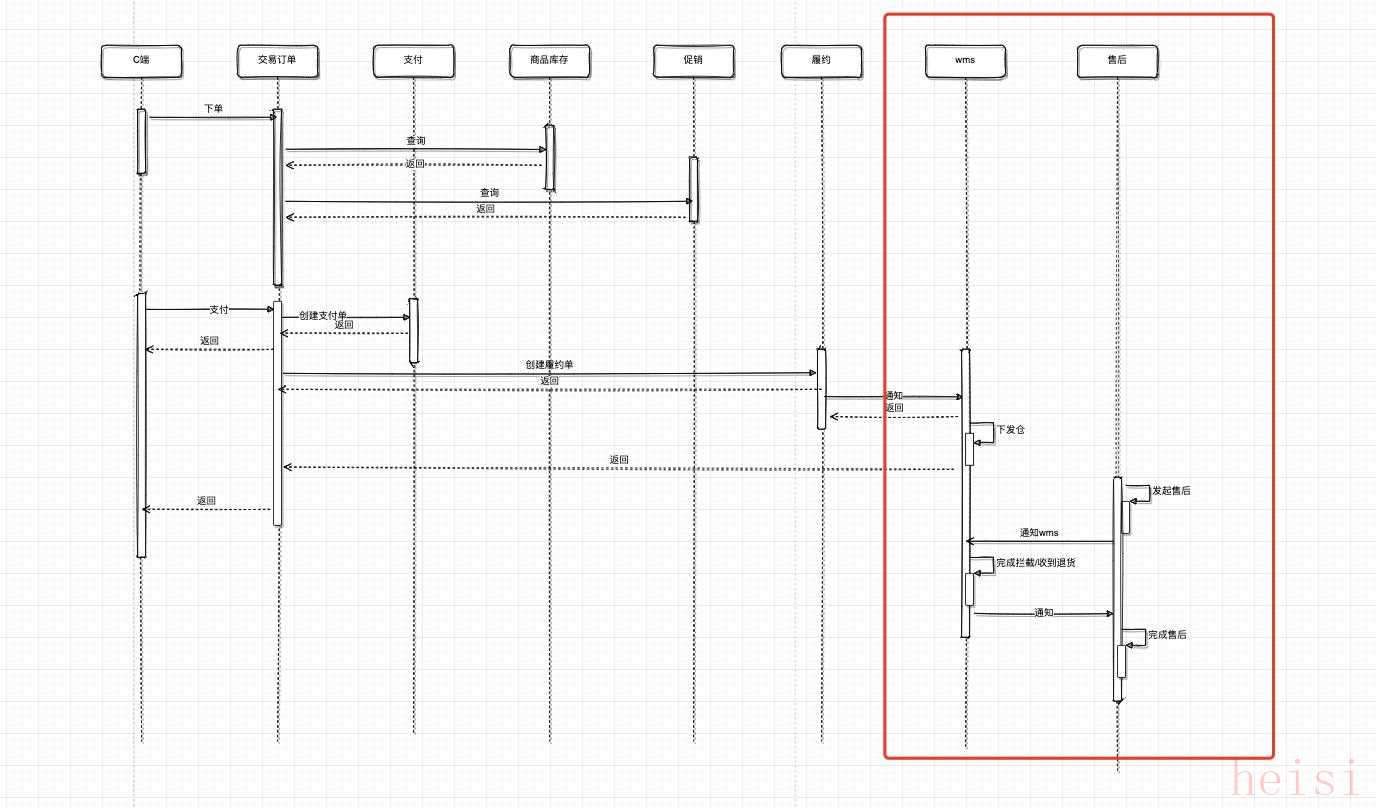 - 履約:支付成功后,訂單通知履約創(chuàng)建履約單,虛擬商品正向流程結(jié)束;對(duì)于實(shí)體商品,履約系統(tǒng)下發(fā)到wms,通知發(fā)貨