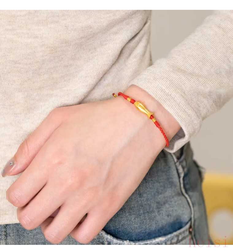 無論是簡(jiǎn)約的素款,還是搭配紅繩款,或者是搭配編織繩的款式都即輕盈又小預(yù)算,寓意“財(cái)源滾滾+十全十美”。