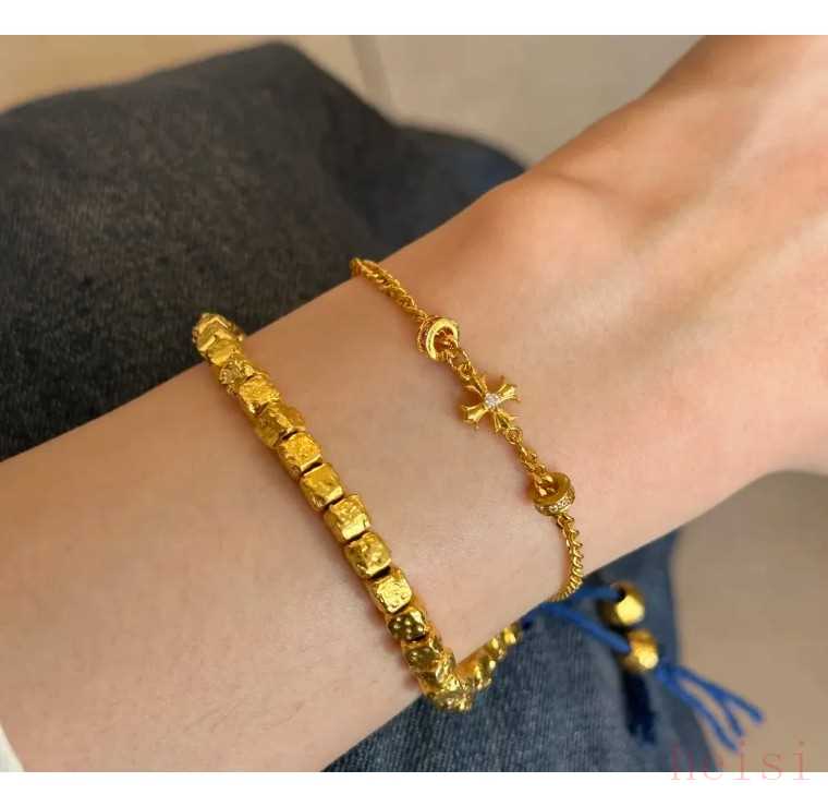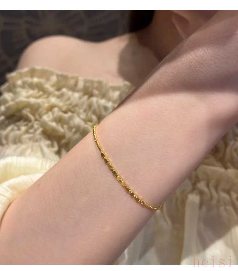 5、方糖珠黃金手鏈:懶人必備的“隱形富貴”blingbling的小方糖黃金手鏈,單顆0.2克左右,疊戴5顆才1克。