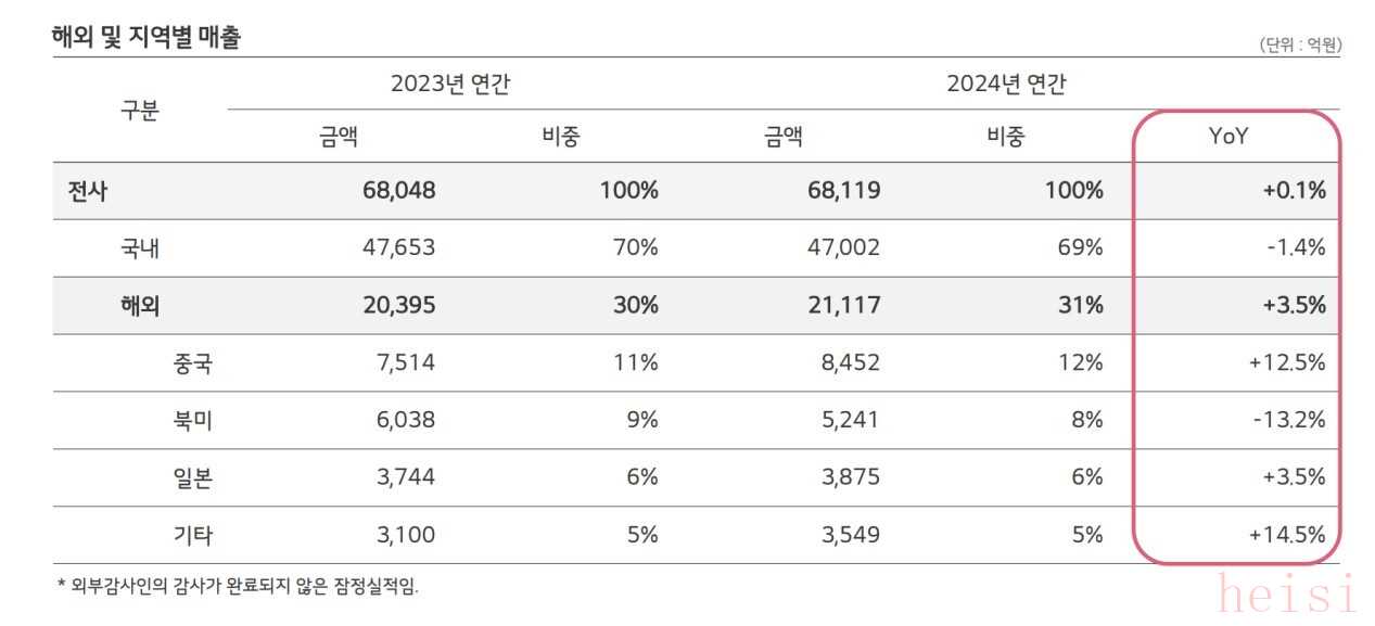 我們來梳理一下關于日韓美妝巨頭在2024年的情況,特別是悅詩風吟的營收變化以及歐美市場的重要性。