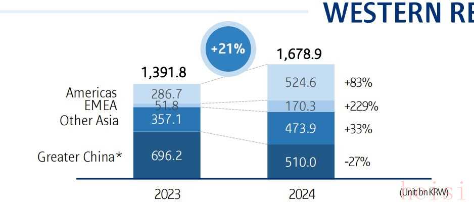 不僅僅是愛茉莉太平洋集團在中國等亞洲市場失意而在歐美市場得意,花王集團2024年財報也反映了同樣的趨勢。
