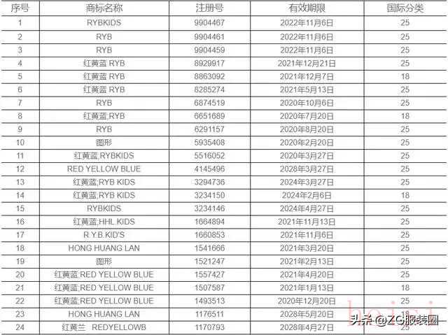 “紅黃藍(lán)”這個(gè)品牌在童裝領(lǐng)域的知名度較高,曾是2008年北京奧運(yùn)會(huì)童裝特許生產(chǎn)商,前24枚商標(biāo)主要集中品牌。而86枚商標(biāo),主要是企業(yè)為防止惡意搶注等原因而注冊(cè)的“保護(hù)性”商標(biāo)。