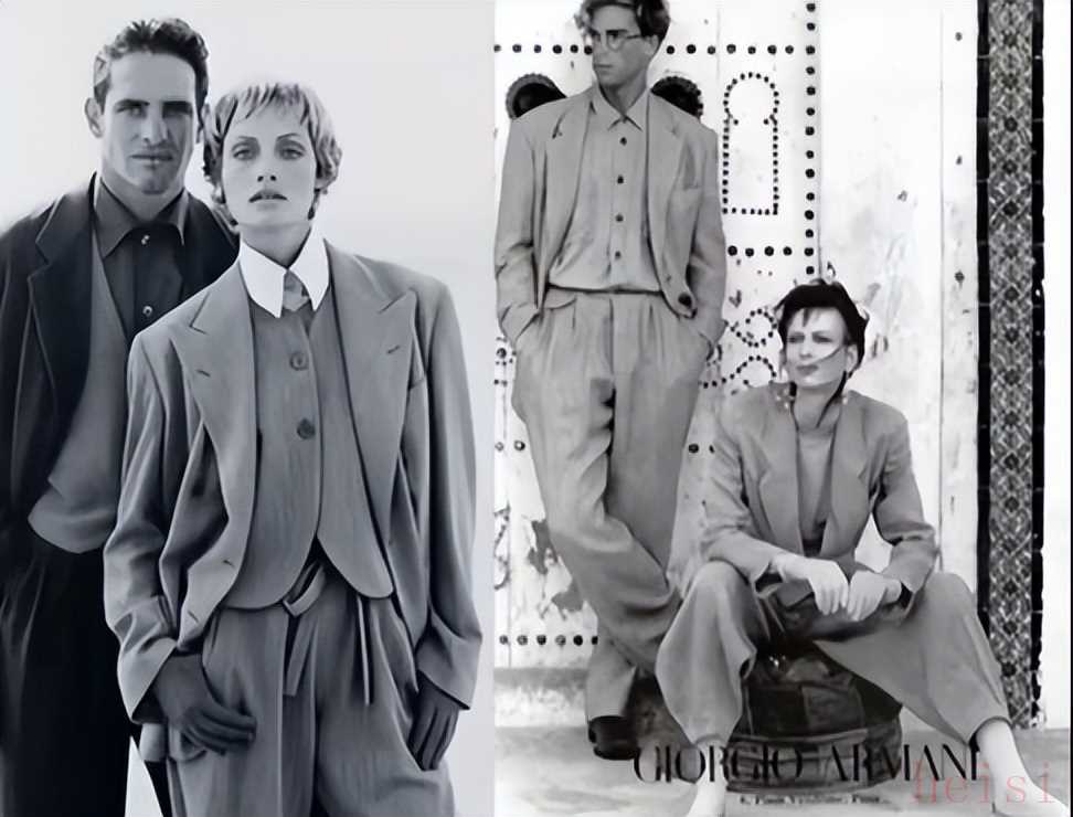 1964 年,從未受過正規(guī)培訓(xùn)的阿瑪尼為切瑞蒂設(shè)計出了一套男裝系列。之后他轉(zhuǎn)為自由設(shè)計師,以業(yè)余身份為數(shù)家公司做兼職設(shè)計師。他的好友加萊奧蒂開始鼓勵他成立自己的品牌,為了提供創(chuàng)業(yè)基金,他不惜賣掉自己的愛車來支援阿瑪尼。 1975 年,喬治阿瑪尼這個品牌正式誕生,除了以男正裝起家,當(dāng)年7月阿瑪尼就顛覆了當(dāng)時的時裝定義,推出了無線條無結(jié)構(gòu)的男士夾克。之后因為家人們無心插柳的幾句話,讓他發(fā)現(xiàn)同樣的理念可以延續(xù)到女裝上,于是他像香奈兒一樣大膽顛覆女裝,推出了“權(quán)力套裝”,使阿瑪尼成為了高級職業(yè)女性的最愛。