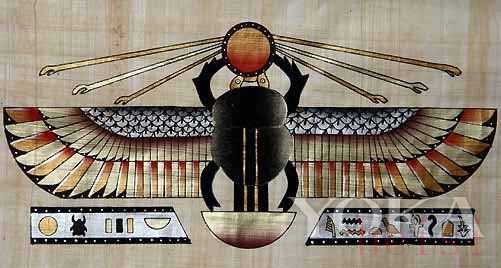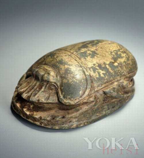 在埃及神話中,一個名叫卡布里的神每天會推送著太陽越過天空,又進入地下世界,第二天又再次升起。這個循環(huán)在埃及人的理解里,代表著一種生死的循環(huán),所以埃及人會在木乃伊的胸口上放置一塊心形裝飾物,名為心形圣甲蟲,這塊圣甲蟲裝飾可以在死后的審判中保護死者。