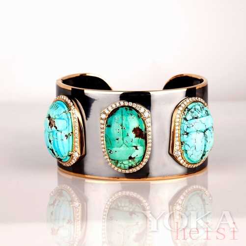 編輯最心水的是美國品牌SYLVA & CIE推出的圣甲蟲手鐲,用綠松石做成的甲蟲擁有原始而美麗的肌理,在與現(xiàn)代風格的黃金交相輝映下,透露出個性而獨特的美感: