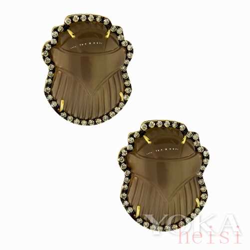 巴西珠寶品牌Silvia Furmanovich推出的圣甲蟲耳環(huán),采用瑪瑙與淺棕色鉆石做成,售價5600美元: