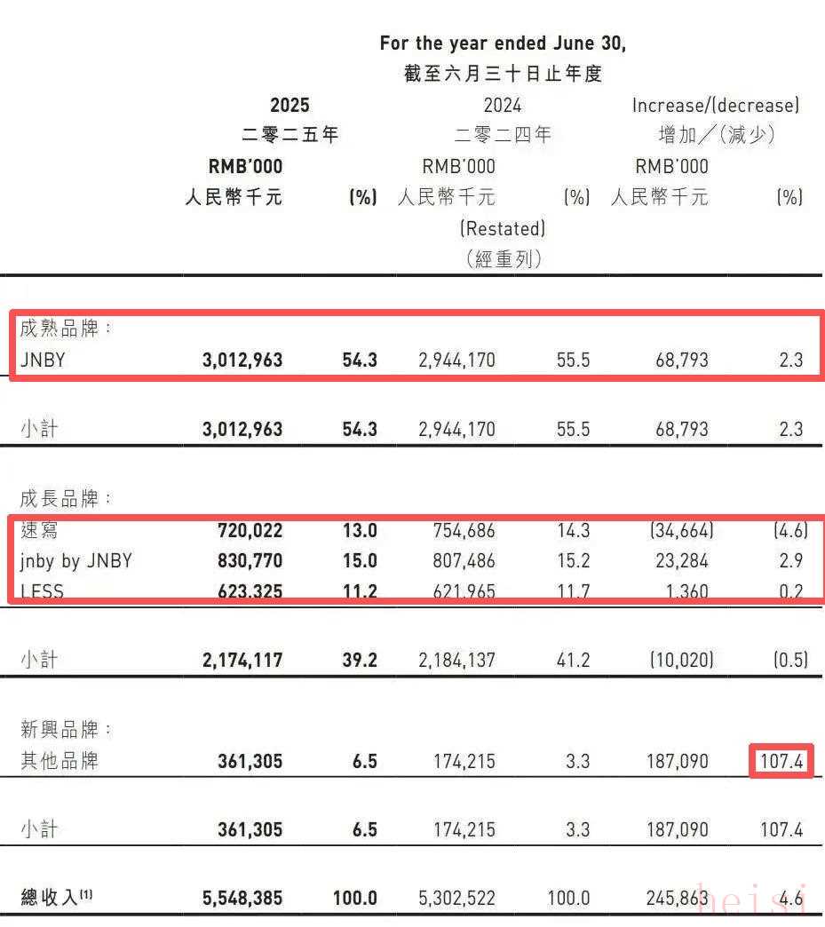 當(dāng)一個(gè)消費(fèi)者選擇JNBY,她很可能會(huì)為伴侶選購(gòu)“速寫”,為孩子挑選“jnby by JNBY”童裝,為新家布置“JNBYHOME”家居品……江南布衣正是通過這樣的品牌矩陣,實(shí)現(xiàn)用戶在不同人生階段和場(chǎng)景中的覆蓋。財(cái)報(bào)顯示,成熟品牌JNBY營(yíng)收占比已降至54.3%,速寫、LESS及童裝等成長(zhǎng)品牌貢獻(xiàn)39.2%,新興品牌如蓬馬、JNBYHOME更實(shí)現(xiàn)107%的高速增長(zhǎng)。