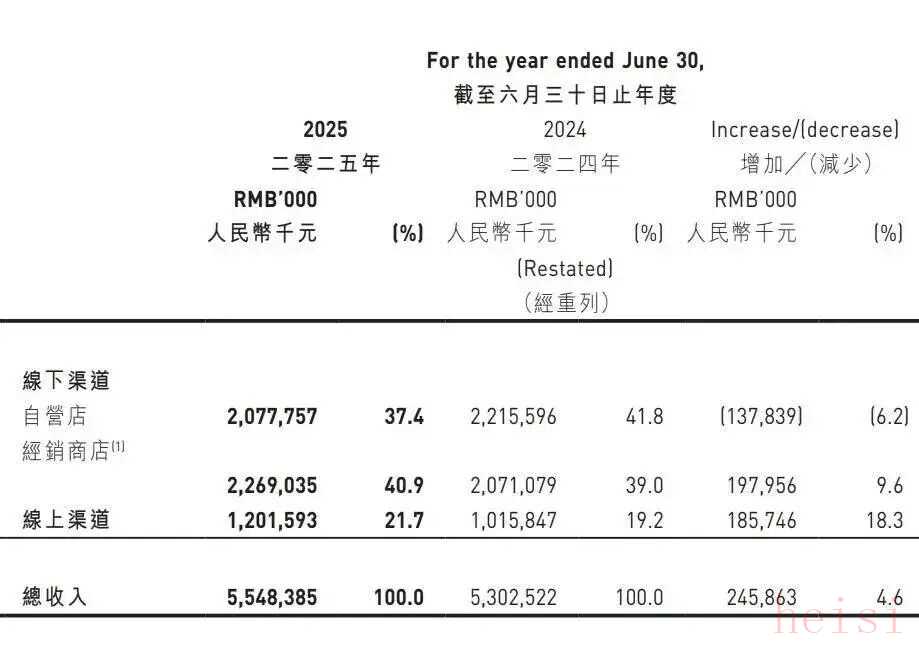 2025財(cái)年財(cái)報(bào)顯示,江南布衣超過80%的業(yè)績(jī)來(lái)自線下門店,它在全球已經(jīng)開出2117家實(shí)體店,其中超40%位于一、二線城市,貢獻(xiàn)了一半以上的零售額。更難得的是,在零售業(yè)普遍叫苦的今天,它的單店業(yè)績(jī)依然穩(wěn)得住,折扣穩(wěn)定,品牌溢價(jià)能力可見一斑。