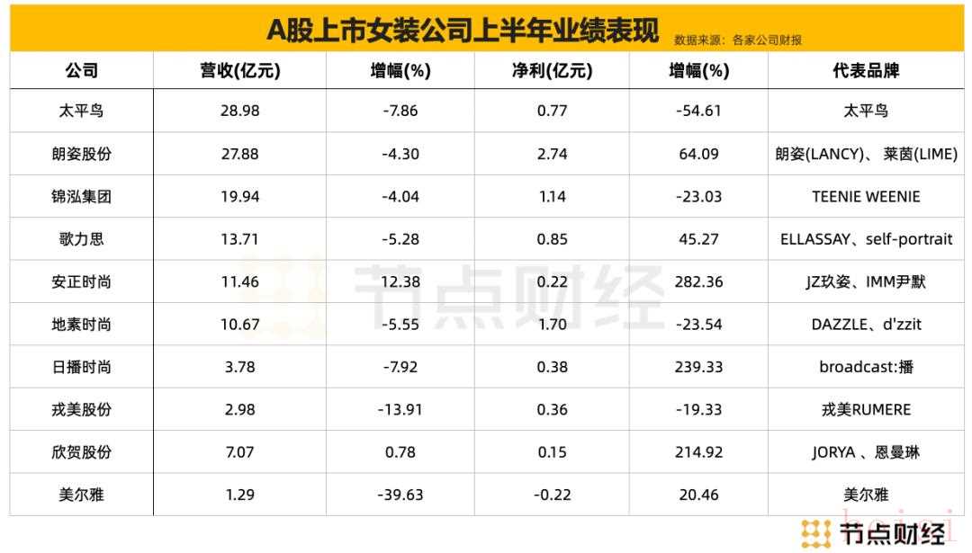 A股上市的10家女裝企業(yè),幾乎全部交出營(yíng)收下滑的“成績(jī)單”。其中,太平鳥、錦泓集團(tuán)、地素時(shí)尚、戎美股份四家企業(yè)更是營(yíng)收、凈利雙雙下跌。