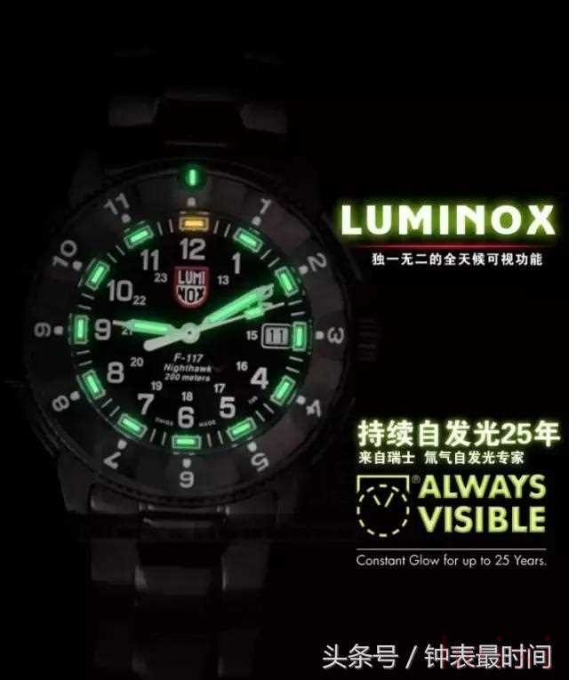 Luminox 知名于全球,就在于它是為現(xiàn)今美國(guó)海軍的海、陸、空三棲特種部隊(duì)-海豹部隊(duì)(SEALSS)所開發(fā),并且已成為其標(biāo)準(zhǔn)制式用表。2003年第二次美、伊戰(zhàn)爭(zhēng)中,美國(guó)空軍執(zhí)行主要轟炸任務(wù)的F-117夜鷹式隱形戰(zhàn)斗機(jī),所有的飛行員便是隨身佩帶Luminox 。Luminox表款比其它的手表多了一道獨(dú)特的制造步驟——將含氚的特殊發(fā)旋光性氣體,強(qiáng)力填充至微小的玻璃管中,經(jīng)雷射密封后再放入每只手表內(nèi),在絕無放射線外泄的情況下,產(chǎn)生穩(wěn)定且高亮度的光源。這也使得它的夜光系統(tǒng)獨(dú)樹一幟,分外耀眼。