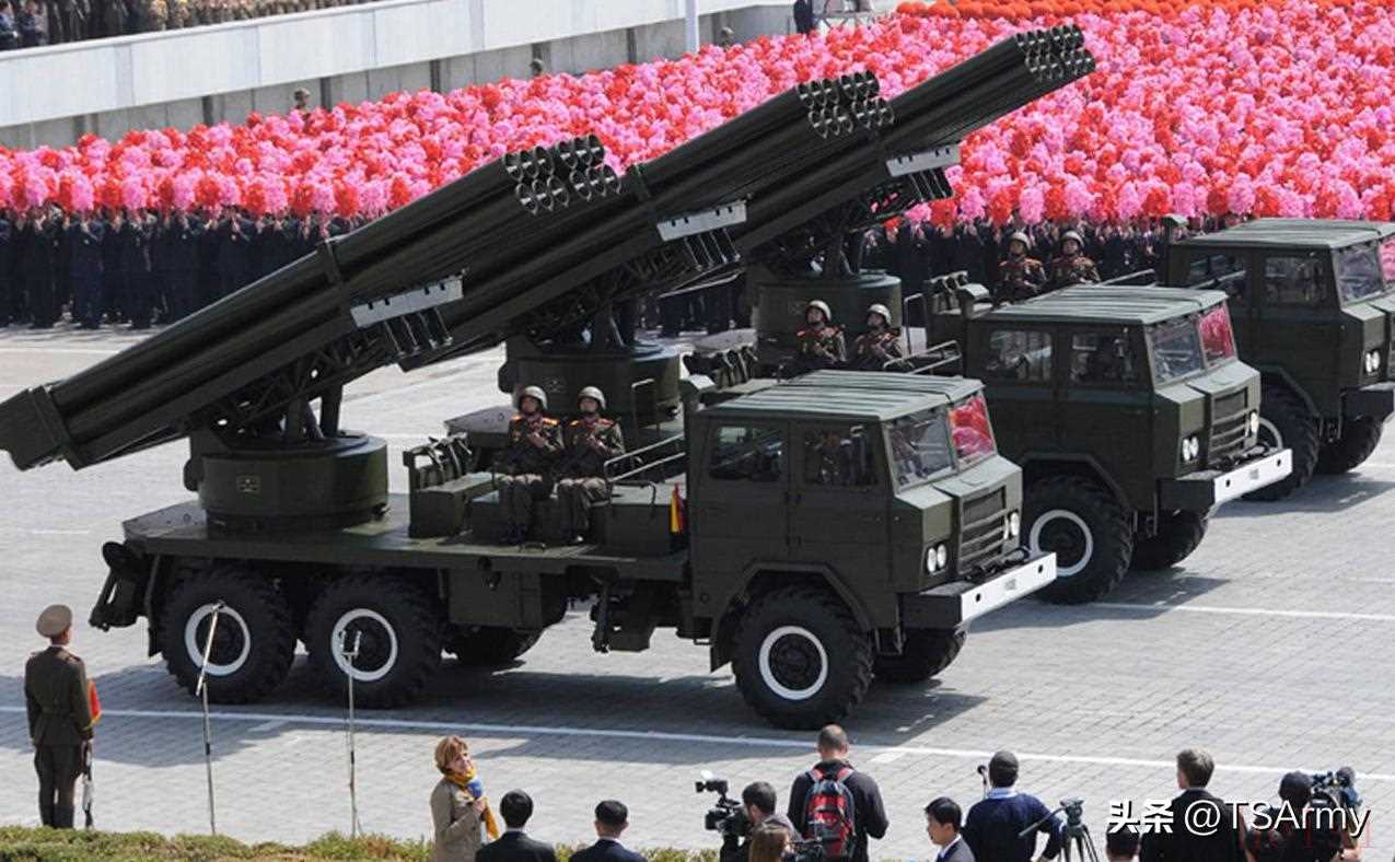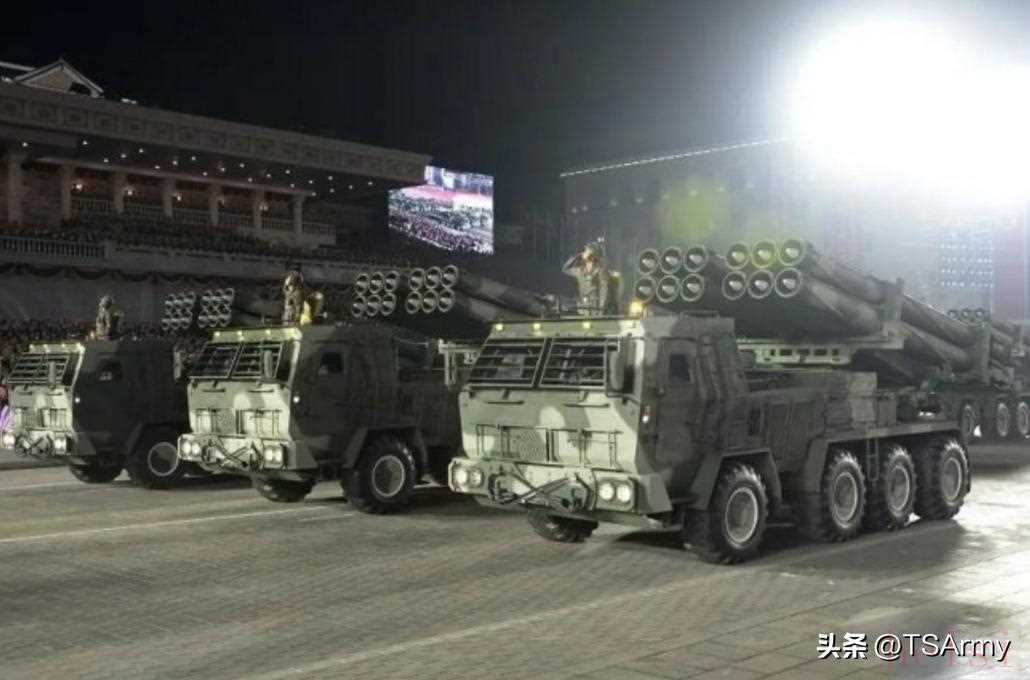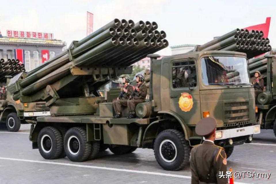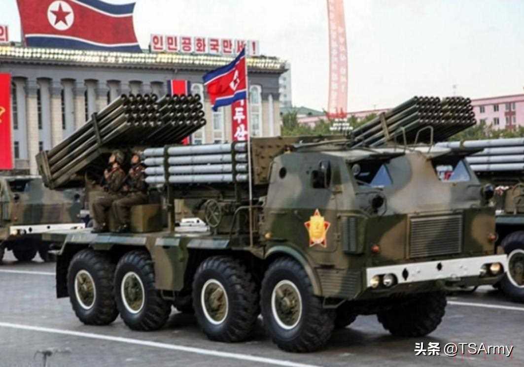 朝鮮曾在上世紀八九十年代也曾引進過一部分“太脫拉”T-815型8x8卡車,同樣也是用來運載多管火箭炮,到現(xiàn)在仍在朝鮮人民軍中服役,同時也包括后期的仿制型和改裝型。上圖閱兵式中就是搭載火箭炮系統(tǒng)的“太脫拉”T-815型卡車,上面還附帶著迷彩涂裝,并將前部改為裝甲式車艙。