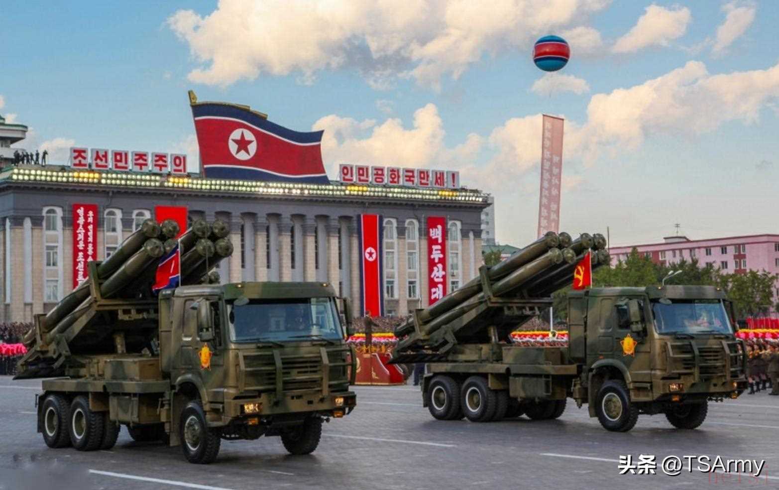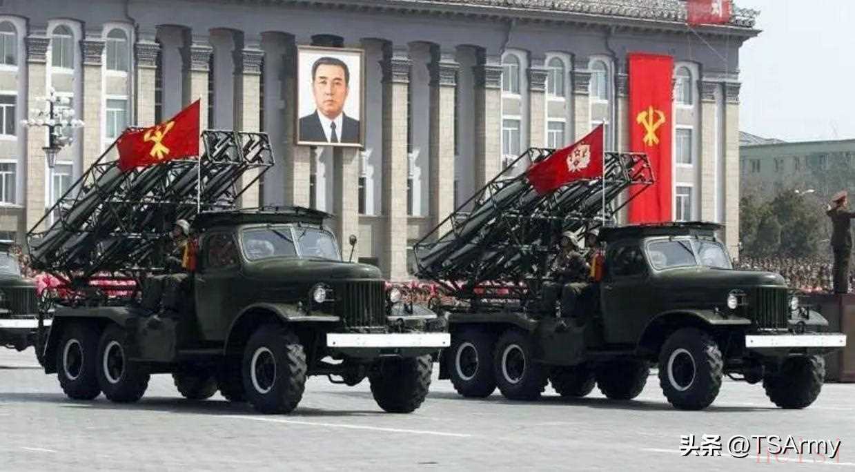 朝鮮在當(dāng)年也引進過一部分已經(jīng)退役的吉爾-135重型運載車,經(jīng)過改進后用來運載重型火箭炮。上圖是近幾年的朝鮮閱兵式,其中就是運載大口徑火箭炮系統(tǒng)的吉爾-135改裝型。