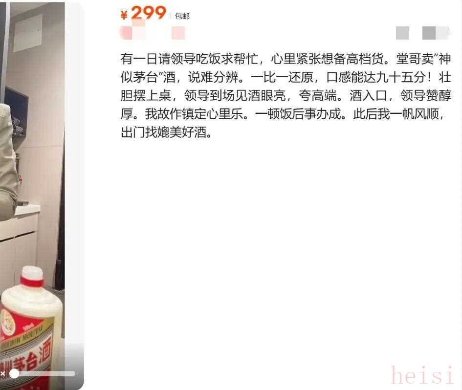 而在另一家IP地址顯示為河南的商鋪(以下簡稱商家B)中,上述名酒的價格則更加便宜。“毛(指飛天茅臺)單瓶190元,八代(五糧液)單瓶190元,國窖1573單瓶140元,年份隨機(jī)?!钡昙乙彩歉纱嗟鼗貜?fù),但與商家A不同,該商家用的都是真瓶,其余都是一比一復(fù)刻。通過和他們的交談內(nèi)容得知,商家A和商家B的價格差異主要在于防偽手段及假酒品質(zhì)上。商家A稱,很多二維碼、芯片、膠帽都是需要技術(shù)制造,這些技術(shù)活都需要成本,“而且我們酒質(zhì)也好,也要有合理的利潤”。而針對記者提出怕收到的產(chǎn)品會“一眼假”,商家A表示:“防偽這方面您放心,我們都是有專業(yè)的流水線工作人員,都是手工包裝,不會出現(xiàn)失誤的?!?/p>該商家還透露:“(其售賣的)飛天茅臺可以過NFC防偽識別,我有實(shí)拍視頻可以發(fā)給您看。五糧液和國窖1573也是都可以掃碼,但是沒有視頻。”商家給記者發(fā)來的視頻,以展示其售賣的仿制茅臺可通過NFC防偽識別商家B則表示:“(其售賣的產(chǎn)品)手機(jī)正常掃碼,官網(wǎng)(防偽查詢)過不去?!?/p>為了讓記者放心,商家A還說,“這個確實(shí)是實(shí)話,您可以一樣拿一瓶過去嘗一下,或者您如果要看包裝的話,您可以拿整箱?!?/p>誰在購買“高仿”酒商家稱用于接待領(lǐng)導(dǎo)或送禮那么,是哪些人在購買這些“高仿”版名酒?主要的去向是哪里呢?記者在調(diào)查中發(fā)現(xiàn),不少商家均打著“花小錢辦大事”“幫老板省錢”等標(biāo)簽,來招攬顧客。有一個商家竟然在產(chǎn)品介紹里這樣寫道:“有一日請領(lǐng)導(dǎo)吃飯求幫忙,心里緊張想備高檔貨。堂哥賣‘神似茅臺’酒,說難分辨。一比一還原,口感能達(dá)九十五分!壯膽擺上桌,領(lǐng)導(dǎo)到場見酒眼亮,夸高端。酒入口,領(lǐng)導(dǎo)贊醇厚。我故作鎮(zhèn)定心里樂。一頓飯后事辦成。此后我一帆風(fēng)順……”