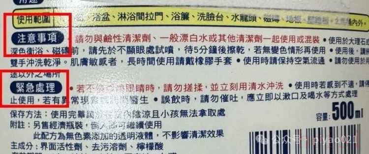 不少家用化學(xué)品的原包裝上有安全注意事項(xiàng),也有緊急處理提醒,需要保留(作者攝)。